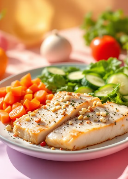 • 구운 연어와 신선한 채소 샐러드 함께 먹기