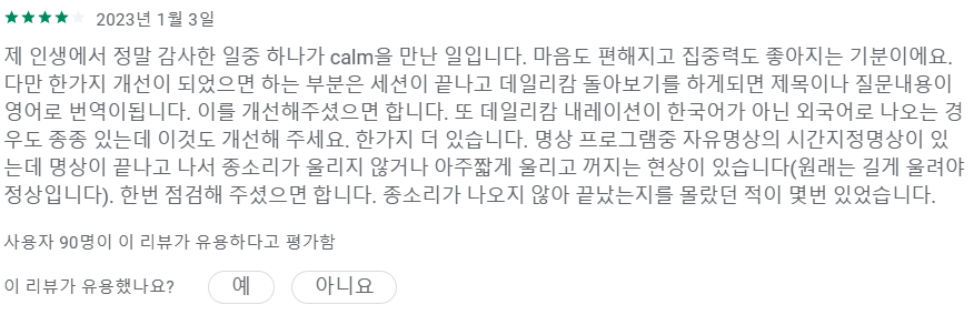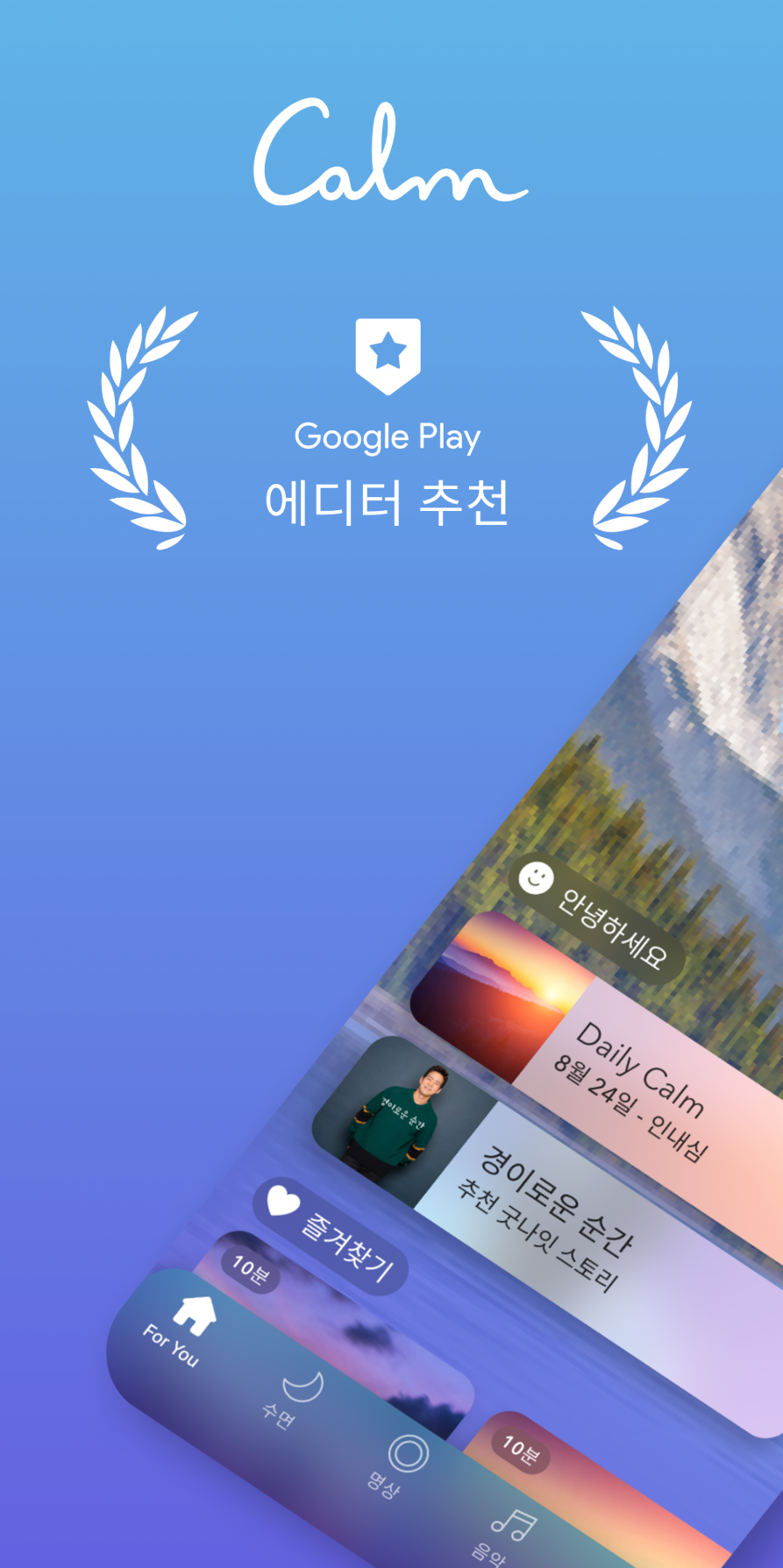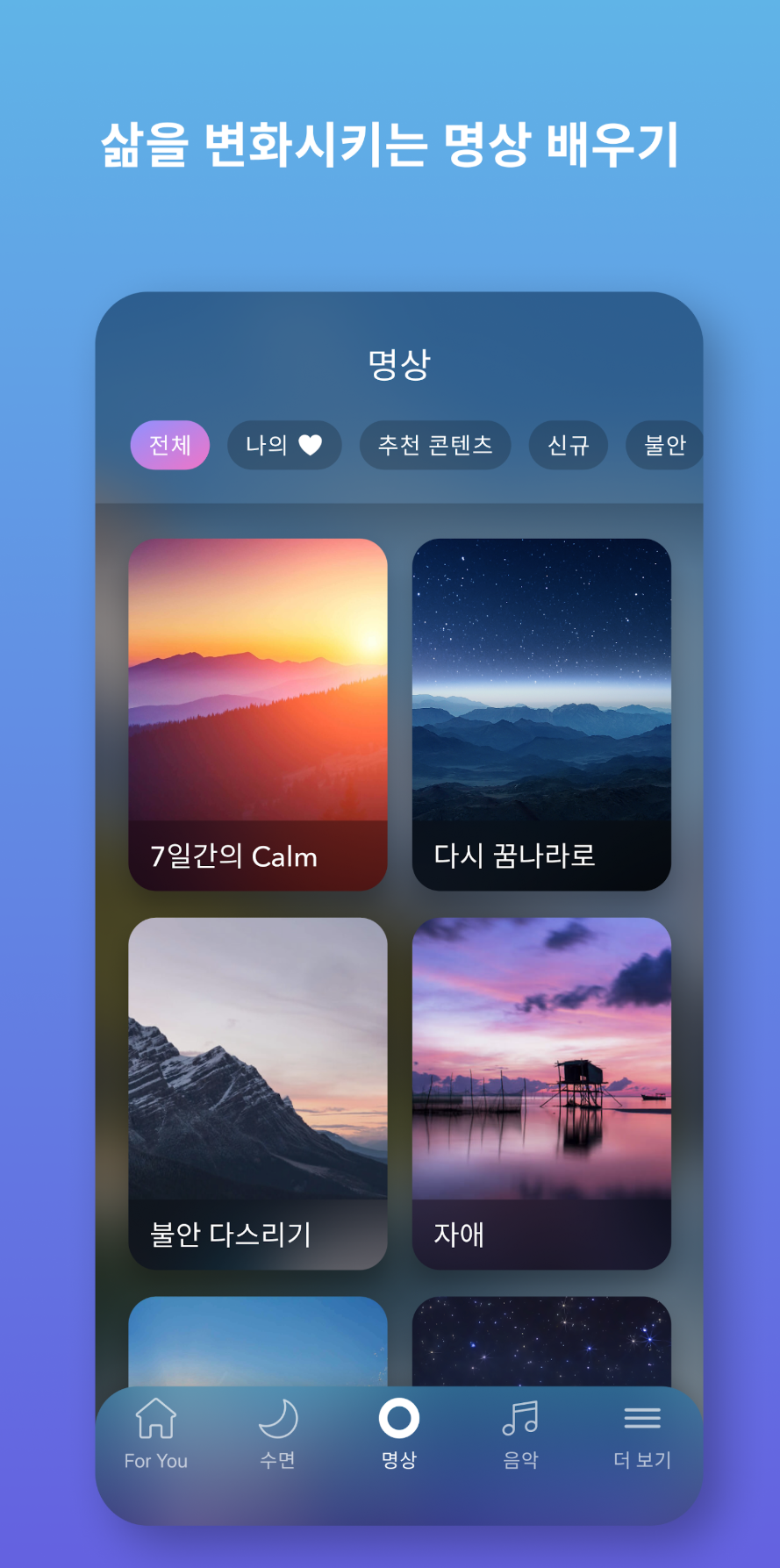 - 데일리 캄: 매일 새로운 10분 명상 세션 제공.