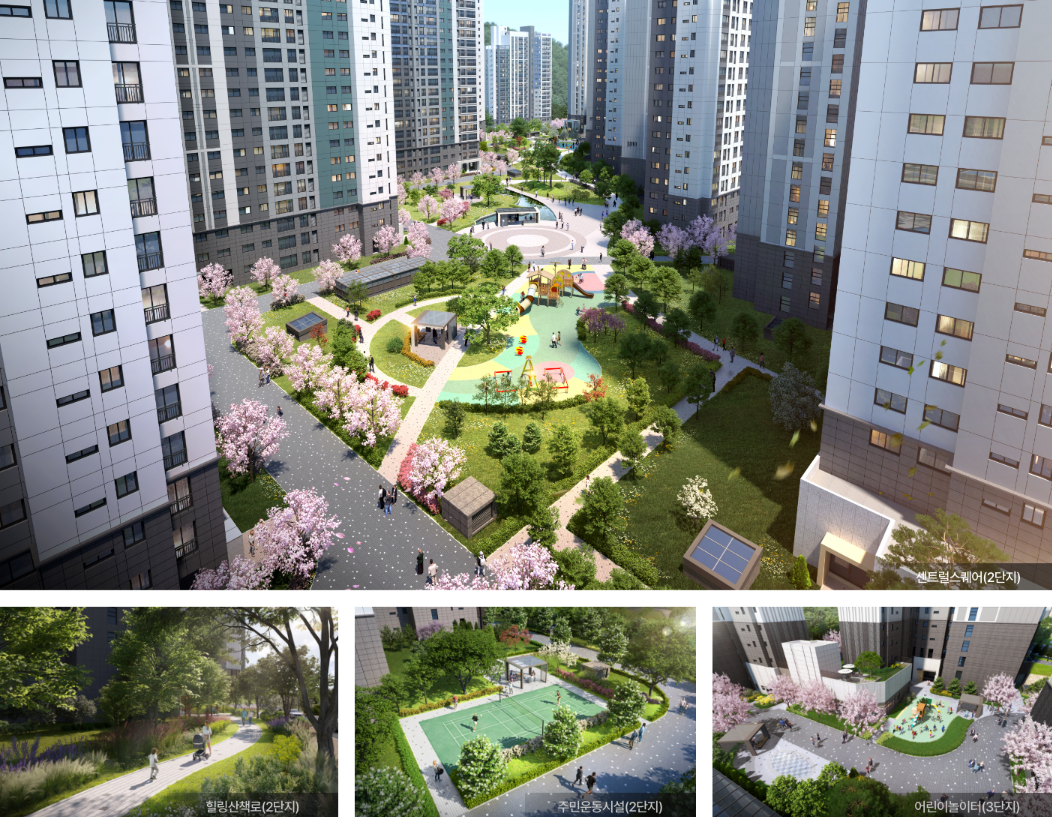 - 커뮤니티 시설, 어린이 놀이터 단지 중심부 배치