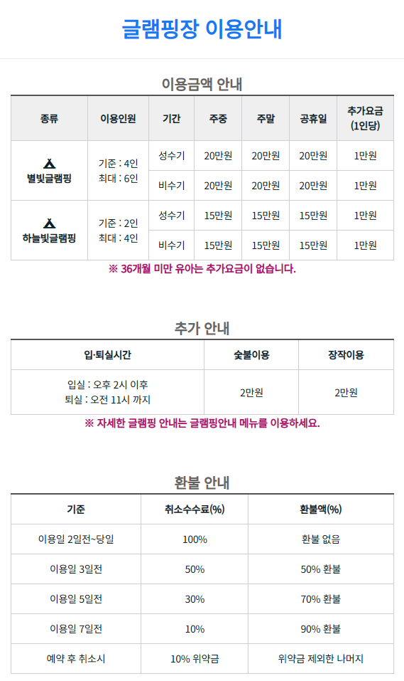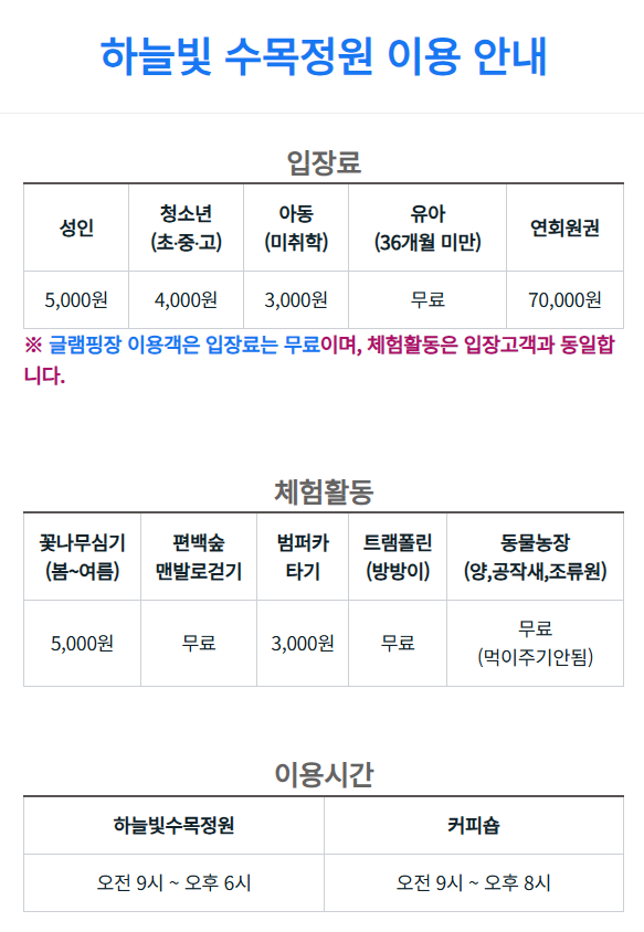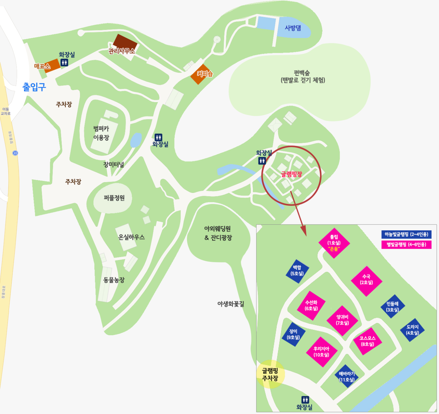 또한 글램핑장이 운영되고 있어 하루를 온전히 자연 속에서 보내고 싶은 분들에게 추천합니다.