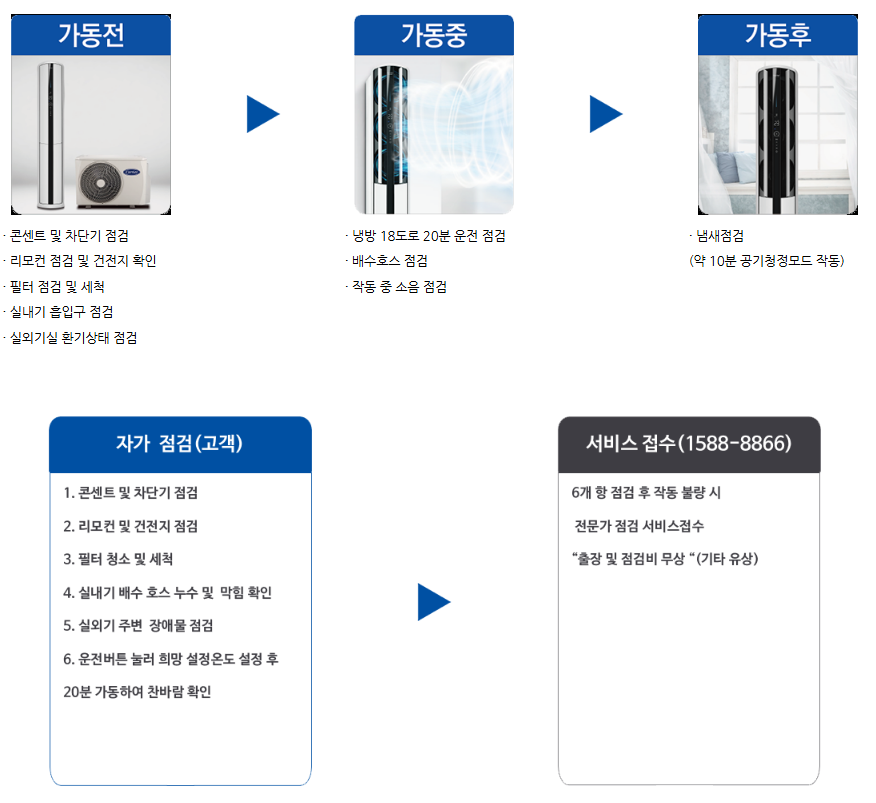 - 온라인: 캐리어에어컨 홈페이지에서 에어컨 무료점검 예약