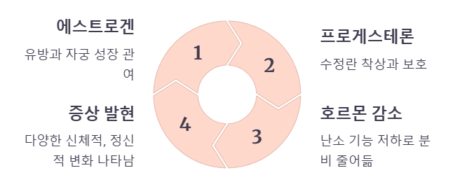사춘기부터 여성의 난소에서는 에스트로겐과 프로게스테론이 분비되어 여성의 신체 발달과 생리 주기를 조절합니다. 에스트로겐은 유방과 자궁의 성장에 관여하고, 프로게스테론은 수정란 착상과 보호에 중요한 역할을 합니다. 폐경기가 되면 이러한 호르몬의 생성이 감소하면서 다양한 증상이 나타납니다.